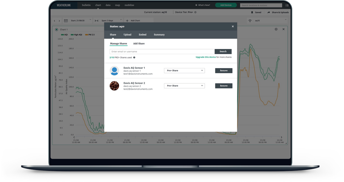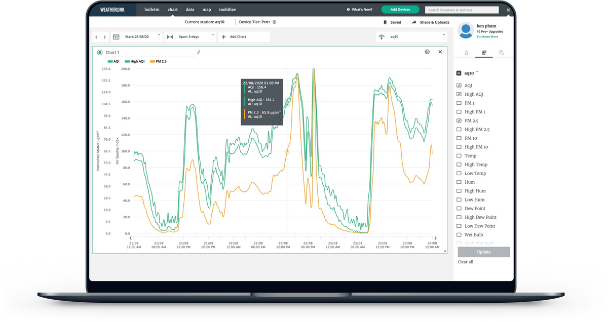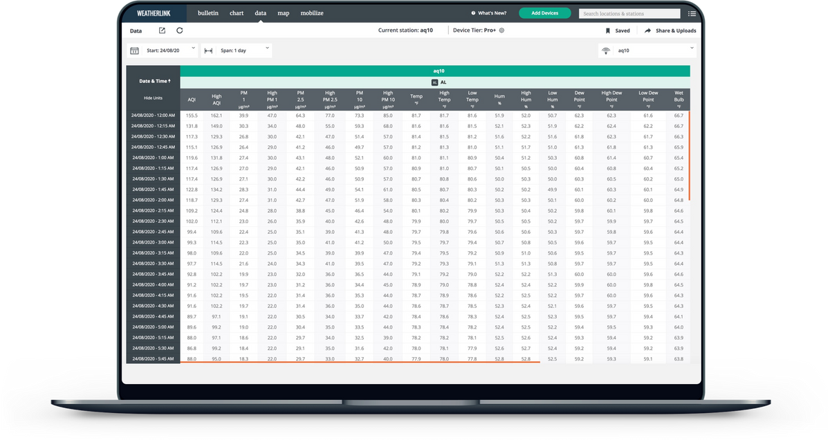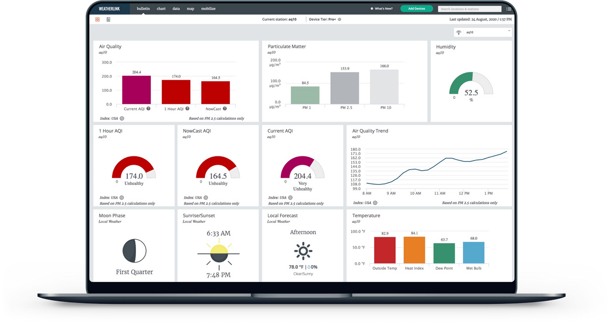 Uploads to the WeatherLink Cloud. See your current AQI and other air quality data on your phone or computer.