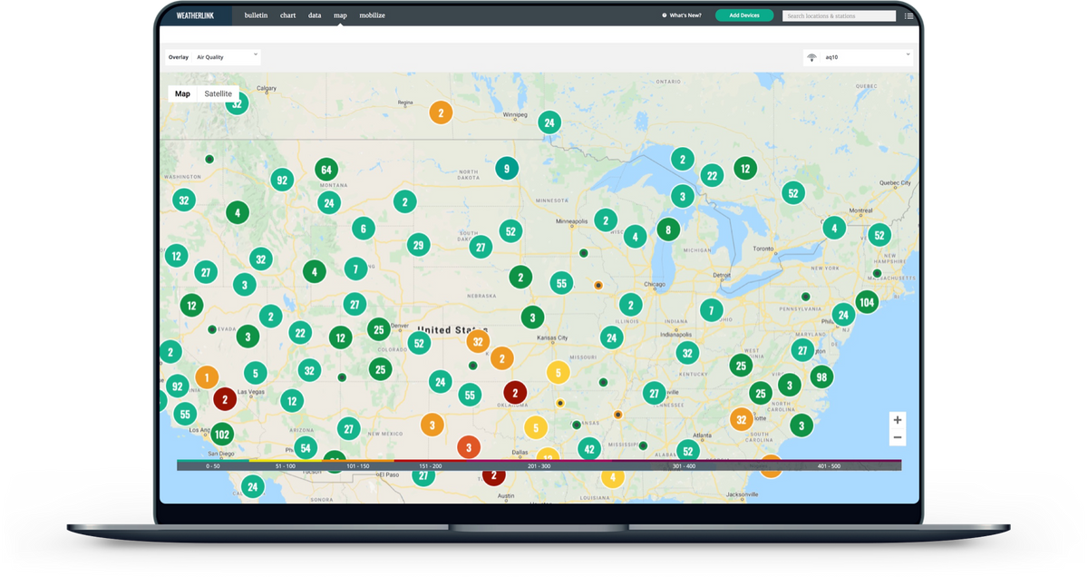 Use multiple AirLinks as stand-alone monitors or easily merge with your Davis weather station on the WeatherLink Cloud.