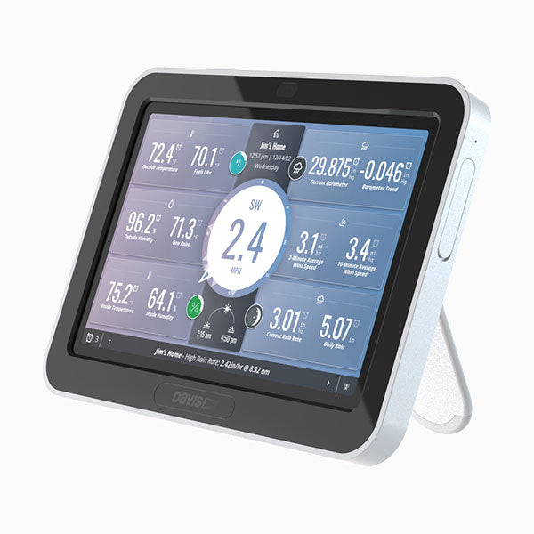 The WeatherLink Console is a fully functional and powerful data collection, display, storage, and analysis tool on its own – no Wi-Fi required. Or you can connect to Wi-Fi to join the WeatherLink community and upload and share data safely and securely. The WeatherLink Console allows you to transmit data from up to 8 transmitters including Vantage Vue, Vantage Pro2 and 80+ Sensor Transmitters.