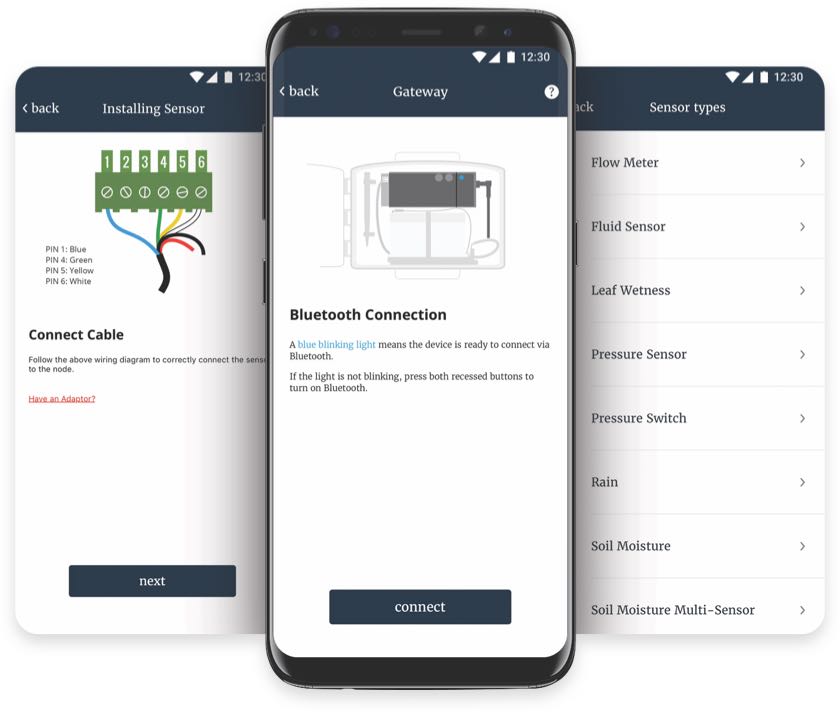 - Securely connect to Gateways and Nodes via your phone’s Bluetooth.
