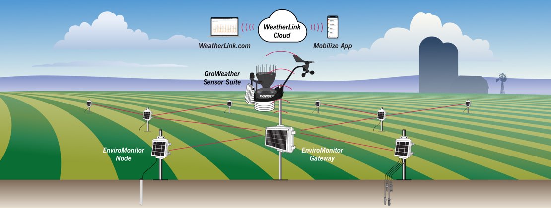 Track site-specific weather and environmental conditions with a custom network of Davis and third-party sensors. Easy-to-install EnviroMonitor gives you the information you need to make critical crop decisions.