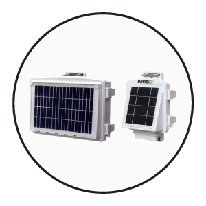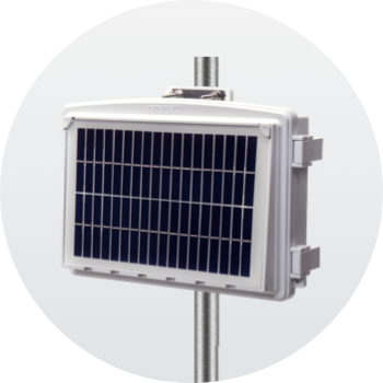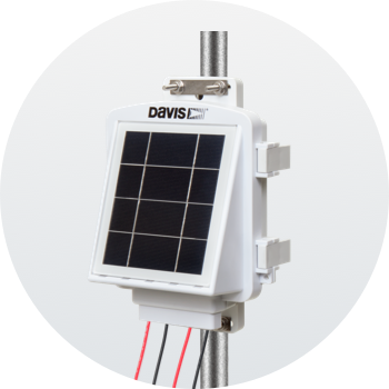 Solar-powered Gateway uploads data using cellular connectivity. Includes a 5-watt solar panel and a rechargeable 6-volt backup battery encased in a weather-resistant housing. Works with EnviroMonitor Nodes and any Davis cabled sensor suite.