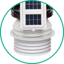 The solar-powered daytime fan draws a constant airflow through the sensor chamber during the day. At night, when the effects of solar radiation are reduced, the fan stops running.